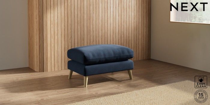 7.2.10 Orlo Relaxed Sit Footstool Fine Chenille Easy Clean Dark Navy Blue Retro Tapered - Light | Made Click here to use our website with more accessibility support, for example screen readers
