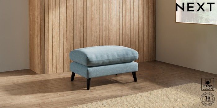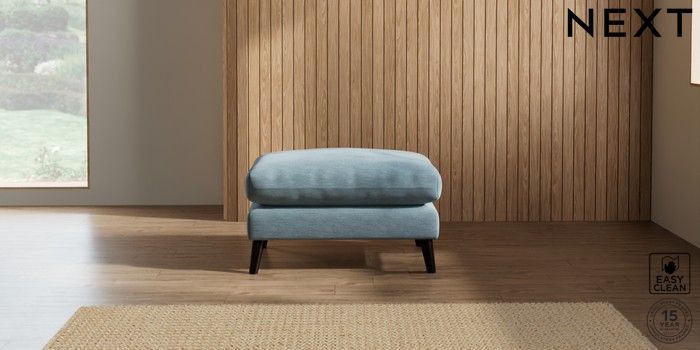 7.2.10 Orlo Relaxed Sit Footstool Fine Chenille Easy Clean Mid Blue Retro Tapered - Dark | Made Click here to use our website with more accessibility support, for example screen readers