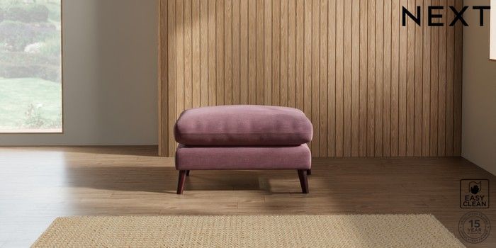 7.2.10 Orlo Relaxed Sit Footstool Fine Chenille Easy Clean Mid Mulberry Purple Retro Tapered - Dark Brown | Made Click here to use our website with more accessibility support, for example screen readers
