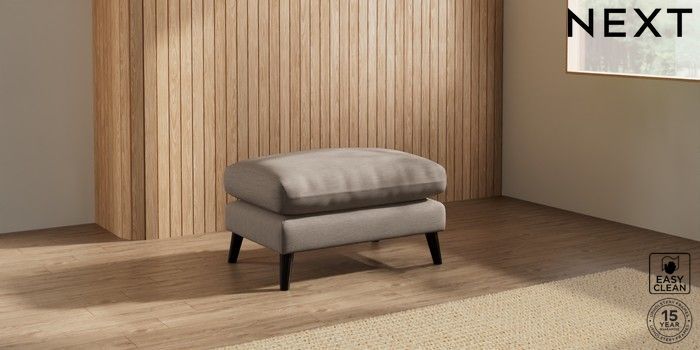 7.2.10 Orlo Relaxed Sit Footstool Fine Chenille Easy Clean Mid Taupe Brown Retro Tapered - Dark | Made Click here to use our website with more accessibility support, for example screen readers