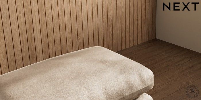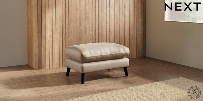 7.2.10 Orlo Relaxed Sit Footstool Luxe Chenille Mid Camel Beige Retro Tapered - Dark | Made Click here to use our website with more accessibility support, for example screen readers