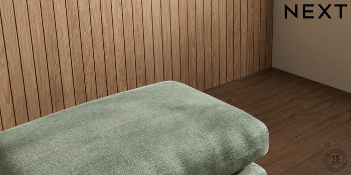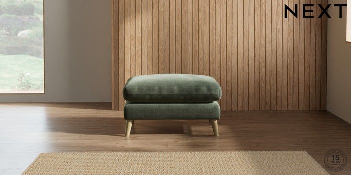 7.2.10 Orlo Relaxed Sit Footstool Luxe Chenille Mid Green Retro Tapered - Light | Made Click here to use our website with more accessibility support, for example screen readers