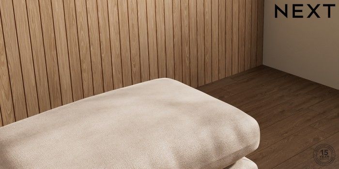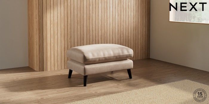 7.2.10 Orlo Relaxed Sit Footstool Luxe Chenille Mid Natural Retro Tapered - Dark | Made Click here to use our website with more accessibility support, for example screen readers