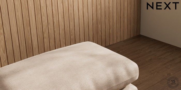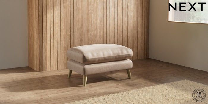 7.2.10 Orlo Relaxed Sit Footstool Luxe Chenille Mid Natural Retro Tapered - Light | Made Click here to use our website with more accessibility support, for example screen readers