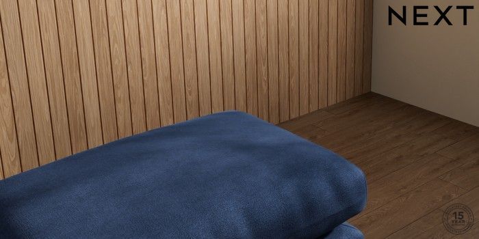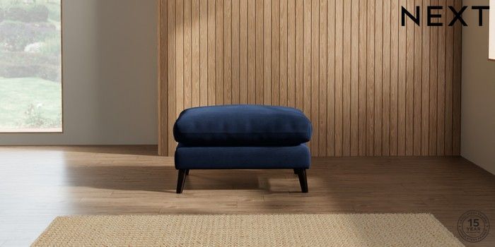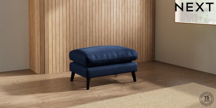 7.2.10 Orlo Relaxed Sit Footstool Luxe Chenille Navy Blue Retro Tapered - Dark | Made Click here to use our website with more accessibility support, for example screen readers