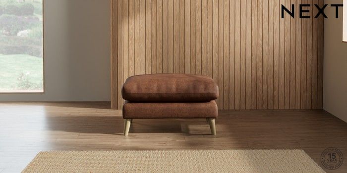 7.2.10 Orlo Relaxed Sit Footstool Monza Faux Leather Easy Clean Chestnut Brown Retro Tapered - Light | Made Click here to use our website with more accessibility support, for example screen readers