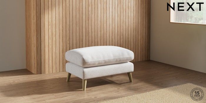7.2.10 Orlo Relaxed Sit Footstool Multi Weave Oyster Retro Tapered - Light | Made Click here to use our website with more accessibility support, for example screen readers