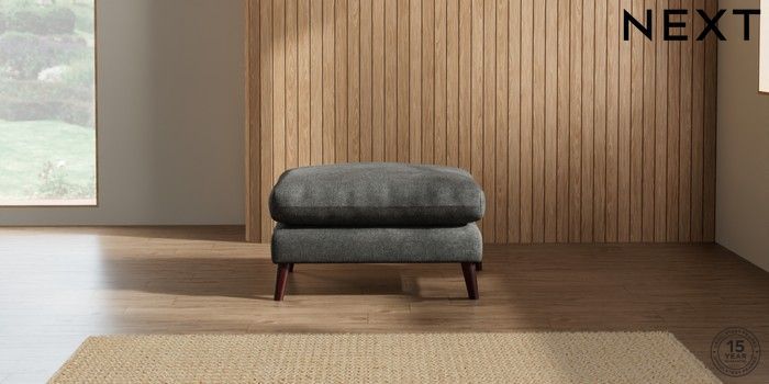 7.2.10 Orlo Relaxed Sit Footstool Plush Chenille Dark Grey Retro Tapered - Dark Brown | Made Click here to use our website with more accessibility support, for example screen readers