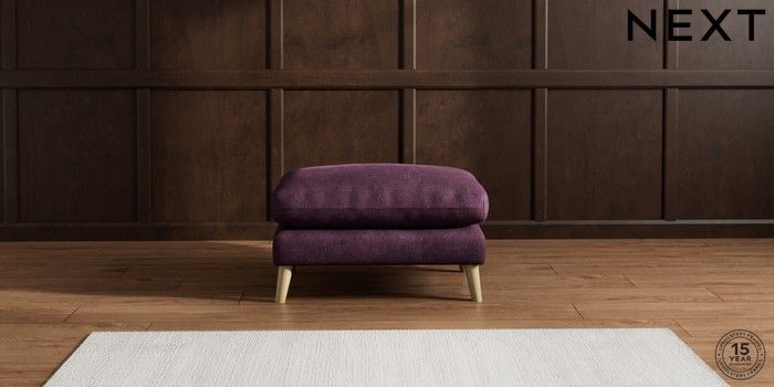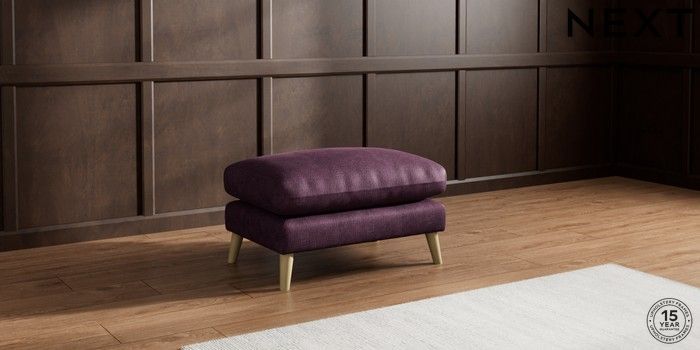 7.2.10 Orlo Relaxed Sit Footstool Plush Chenille Dark Plum Purple Retro Tapered - Light | Made Click here to use our website with more accessibility support, for example screen readers