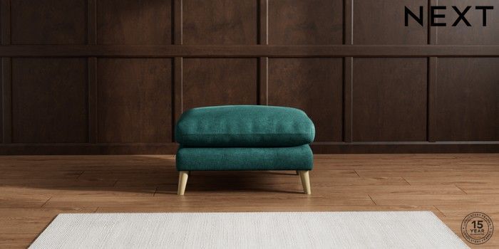 7.2.10 Orlo Relaxed Sit Footstool Plush Chenille Dark Teal Green Retro Tapered - Light | Made Click here to use our website with more accessibility support, for example screen readers