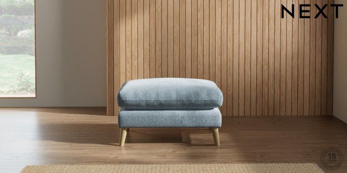 7.2.10 Orlo Relaxed Sit Footstool Plush Chenille Light Blue Retro Tapered - Light | Made Click here to use our website with more accessibility support, for example screen readers