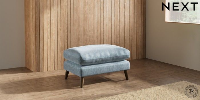 7.2.10 Orlo Relaxed Sit Footstool Plush Chenille Light Blue Retro Tapered - Mid | Made Click here to use our website with more accessibility support, for example screen readers