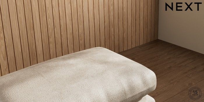 7.2.10 Orlo Relaxed Sit Footstool Plush Chenille Light Natural Retro Tapered - Dark Brown | Made Click here to use our website with more accessibility support, for example screen readers