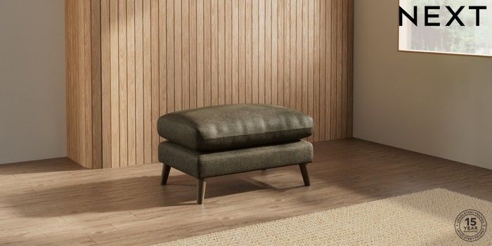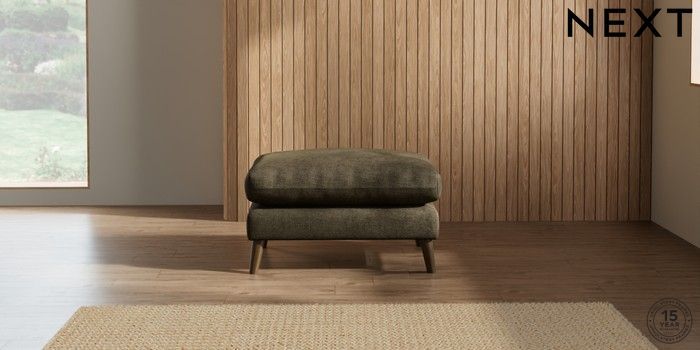 7.2.10 Orlo Relaxed Sit Footstool Plush Chenille Moss Green Retro Tapered - Mid | Made Click here to use our website with more accessibility support, for example screen readers
