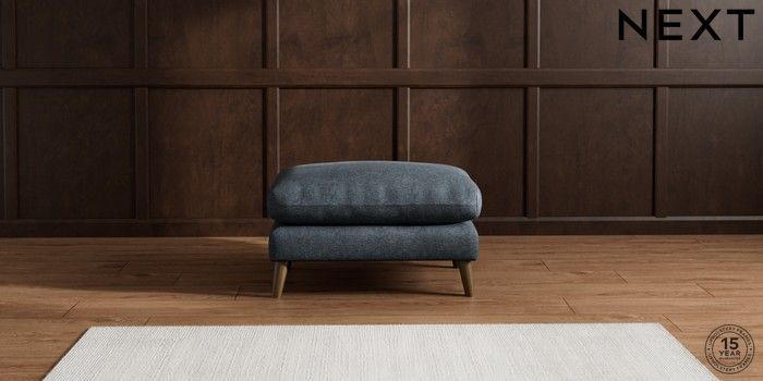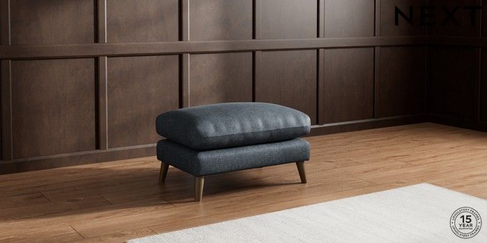 7.2.10 Orlo Relaxed Sit Footstool Plush Chenille Slate Blue Retro Tapered - Mid | Made Click here to use our website with more accessibility support, for example screen readers
