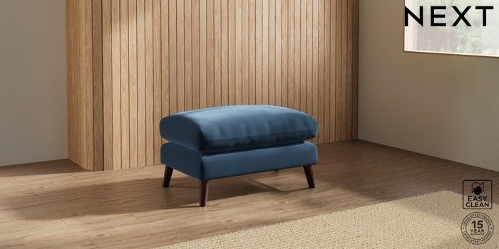 7.2.10 Orlo Relaxed Sit Footstool Plush Velvet Easy Clean Airforce Blue Retro Tapered - Dark Brown | Made Click here to use our website with more accessibility support, for example screen readers