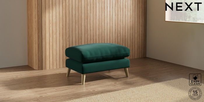 7.2.10 Orlo Relaxed Sit Footstool Plush Velvet Easy Clean Bottle Green Retro Tapered - Light | Made Click here to use our website with more accessibility support, for example screen readers