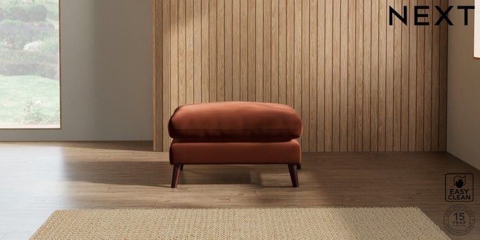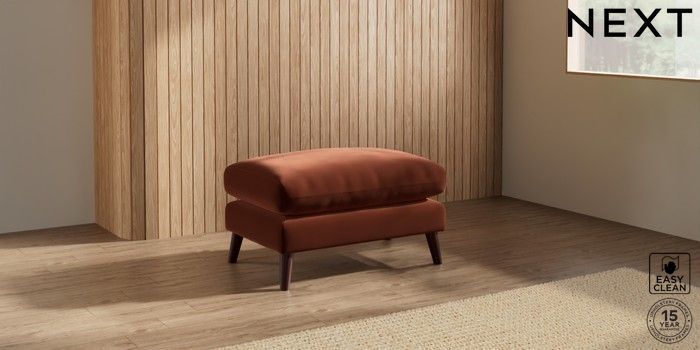 7.2.10 Orlo Relaxed Sit Footstool Plush Velvet Easy Clean Ginger Orange Retro Tapered - Dark Brown | Made Click here to use our website with more accessibility support, for example screen readers