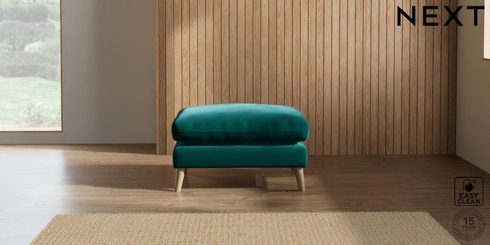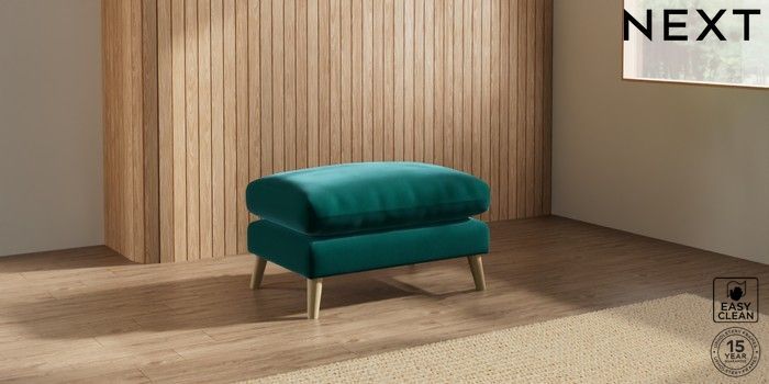 7.2.10 Orlo Relaxed Sit Footstool Plush Velvet Easy Clean Juniper Green Retro Tapered - Light | Made Click here to use our website with more accessibility support, for example screen readers