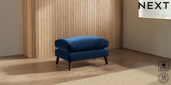 7.2.10 Orlo Relaxed Sit Footstool Plush Velvet Easy Clean Navy Blue Retro Tapered - Dark Brown | Made Click here to use our website with more accessibility support, for example screen readers