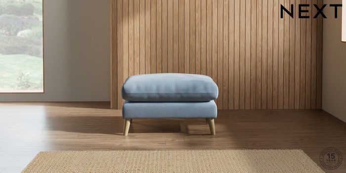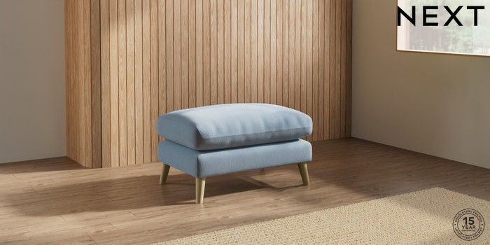 7.2.10 Orlo Relaxed Sit Footstool Relaxed Linen Look Mid Blue Retro Tapered - Light | Made Click here to use our website with more accessibility support, for example screen readers