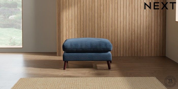 7.2.10 Orlo Relaxed Sit Footstool Ripple Chenille Dark Blue Retro Tapered - Dark Brown | Made Click here to use our website with more accessibility support, for example screen readers