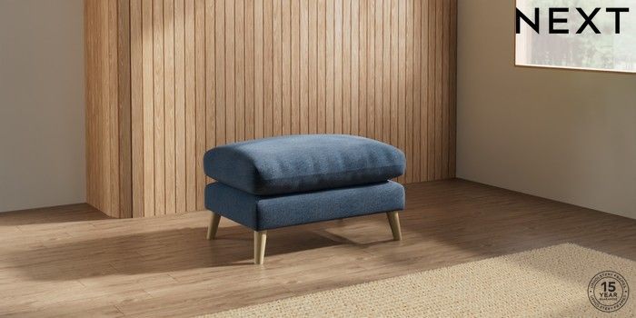 7.2.10 Orlo Relaxed Sit Footstool Ripple Chenille Dark Blue Retro Tapered - Light | Made Click here to use our website with more accessibility support, for example screen readers