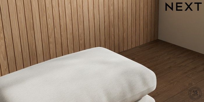 7.2.10 Orlo Relaxed Sit Footstool Ripple Chenille Light Natural Retro Tapered - Dark | Made Click here to use our website with more accessibility support, for example screen readers