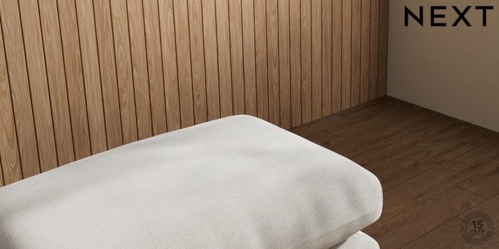 7.2.10 Orlo Relaxed Sit Footstool Ripple Chenille Light Natural Retro Tapered - Light | Made Click here to use our website with more accessibility support, for example screen readers