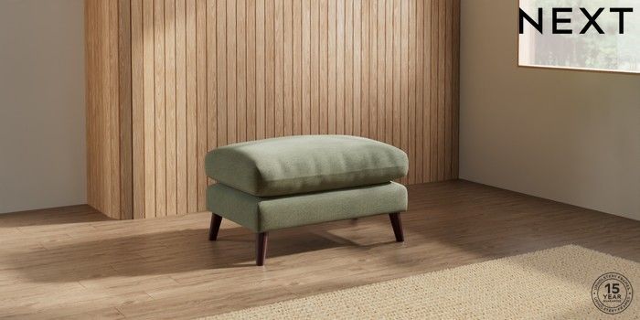 7.2.10 Orlo Relaxed Sit Footstool Ripple Chenille Mid Moss Green Retro Tapered - Dark Brown | Made Click here to use our website with more accessibility support, for example screen readers