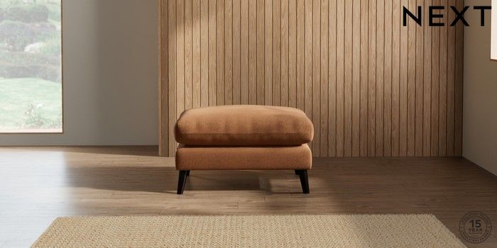 7.2.10 Orlo Relaxed Sit Footstool Ripple Chenille Mid Rust Brown Retro Tapered - Dark | Made Click here to use our website with more accessibility support, for example screen readers