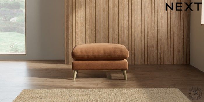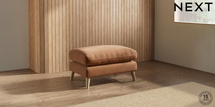 7.2.10 Orlo Relaxed Sit Footstool Ripple Chenille Mid Rust Brown Retro Tapered - Light | Made Click here to use our website with more accessibility support, for example screen readers