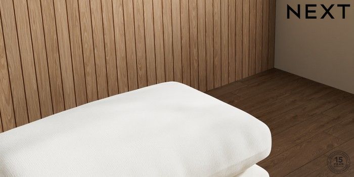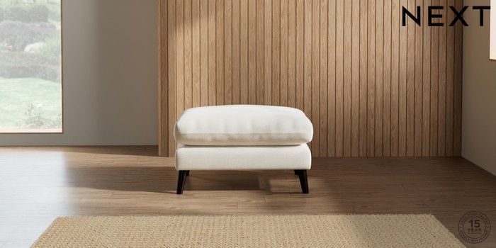 7.2.10 Orlo Relaxed Sit Footstool Ripple Chenille Oyster Retro Tapered - Dark | Made Click here to use our website with more accessibility support, for example screen readers