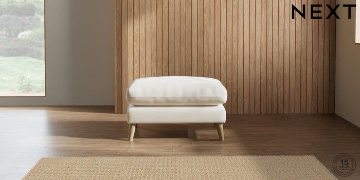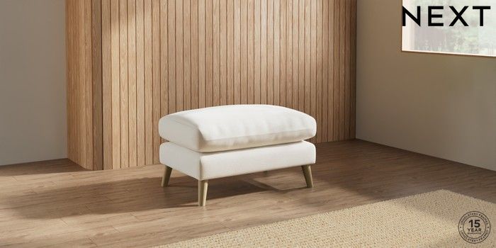 7.2.10 Orlo Relaxed Sit Footstool Ripple Chenille Oyster Retro Tapered - Light | Made Click here to use our website with more accessibility support, for example screen readers