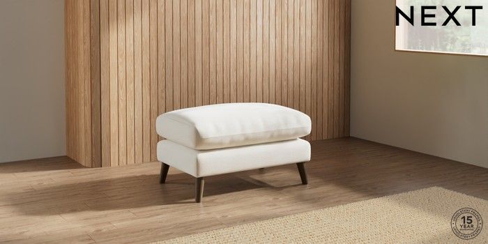 7.2.10 Orlo Relaxed Sit Footstool Ripple Chenille Oyster Retro Tapered - Mid | Made Click here to use our website with more accessibility support, for example screen readers
