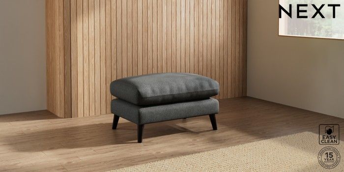 7.2.10 Orlo Relaxed Sit Footstool Tweedy Blend Easy Clean Charcoal Grey Retro Tapered - Dark | Made Click here to use our website with more accessibility support, for example screen readers