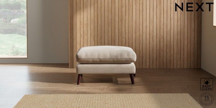 7.2.10 Orlo Relaxed Sit Footstool Tweedy Blend Easy Clean Light Dove Natural Retro Tapered - Dark Brown | Made Click here to use our website with more accessibility support, for example screen readers