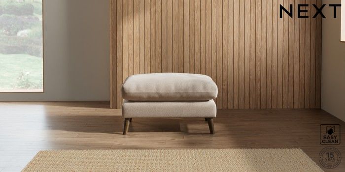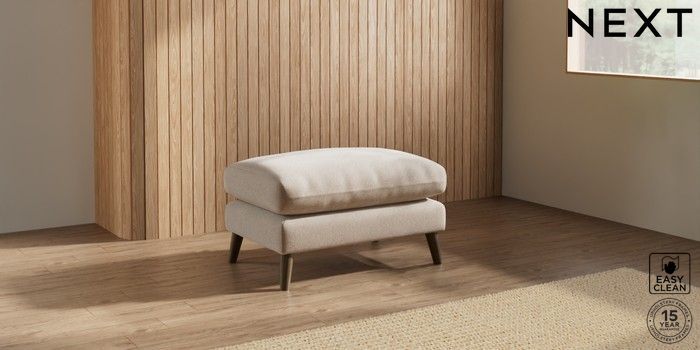 7.2.10 Orlo Relaxed Sit Footstool Tweedy Blend Easy Clean Light Dove Natural Retro Tapered - Mid | Made Click here to use our website with more accessibility support, for example screen readers