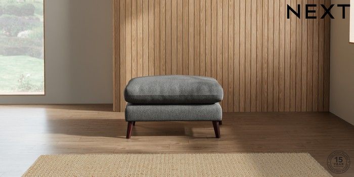7.2.10 Orlo Relaxed Sit Footstool Tweedy Chenille Dark Grey Retro Tapered - Dark Brown | Made Click here to use our website with more accessibility support, for example screen readers