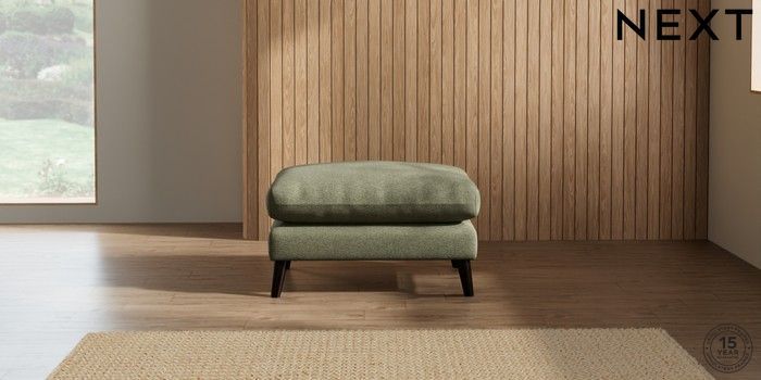 7.2.10 Orlo Relaxed Sit Footstool Tweedy Chenille Mid Moss Green Retro Tapered - Dark | Made Click here to use our website with more accessibility support, for example screen readers