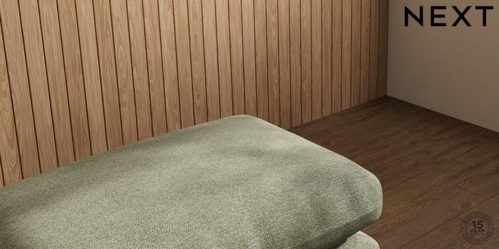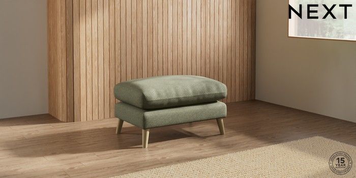 7.2.10 Orlo Relaxed Sit Footstool Tweedy Chenille Mid Moss Green Retro Tapered - Light | Made Click here to use our website with more accessibility support, for example screen readers