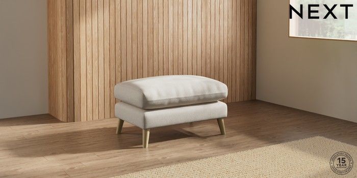 7.2.10 Orlo Relaxed Sit Footstool Tweedy Chenille Oyster Retro Tapered - Light | Made Click here to use our website with more accessibility support, for example screen readers