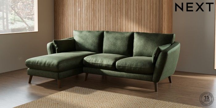 7.2.10 Orlo Relaxed Sit Medium Sofa Chaise - Left Hand Boucle Chenille Dark Moss Green Retro Tapered - Mid | Made Click here to use our website with more accessibility support, for example screen readers
