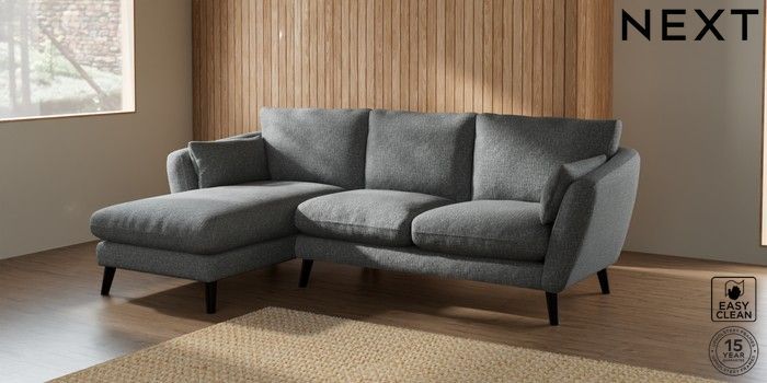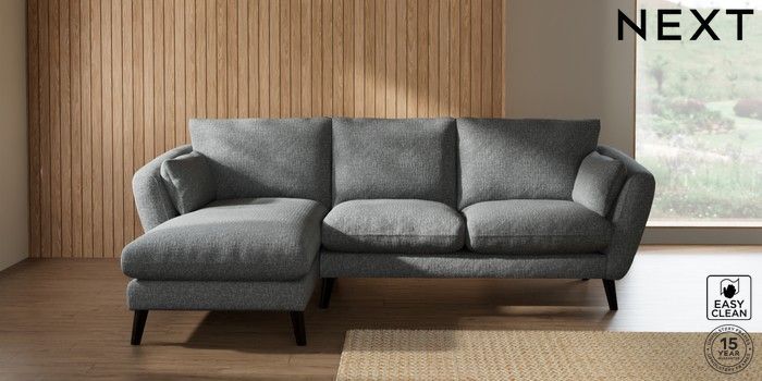 7.2.10 Orlo Relaxed Sit Medium Sofa Chaise - Left Hand Chunky Boucle Easy Clean Mid Grey Retro Tapered - Dark | Made Click here to use our website with more accessibility support, for example screen readers