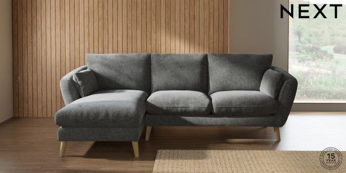 7.2.10 Orlo Relaxed Sit Medium Sofa Chaise - Left Hand Chunky Chenille Dark Grey Retro Tapered - Light | Made Click here to use our website with more accessibility support, for example screen readers