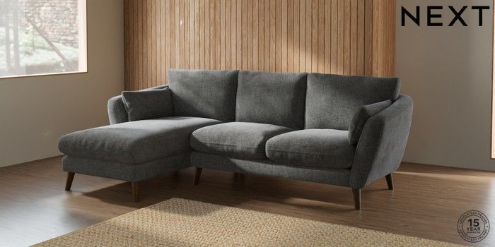 7.2.10 Orlo Relaxed Sit Medium Sofa Chaise - Left Hand Chunky Chenille Dark Grey Retro Tapered - Mid | Made Click here to use our website with more accessibility support, for example screen readers
