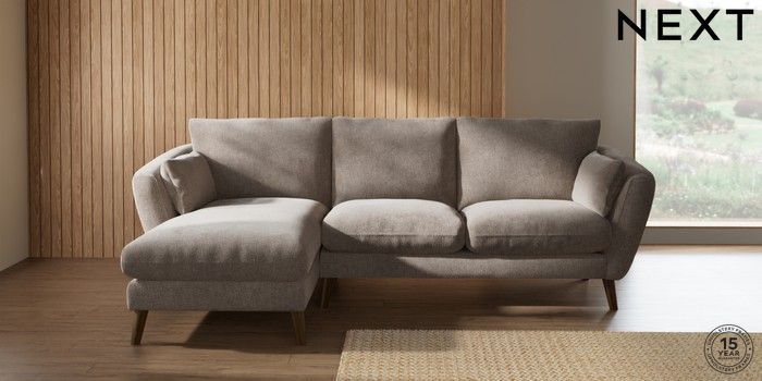 7.2.10 Orlo Relaxed Sit Medium Sofa Chaise - Left Hand Chunky Chenille Light Dove Retro Tapered - Mid | Made Click here to use our website with more accessibility support, for example screen readers