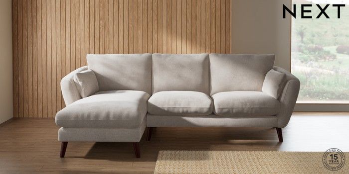 7.2.10 Orlo Relaxed Sit Medium Sofa Chaise - Left Hand Chunky Chenille Oyster Retro Tapered - Dark Brown | Made Click here to use our website with more accessibility support, for example screen readers