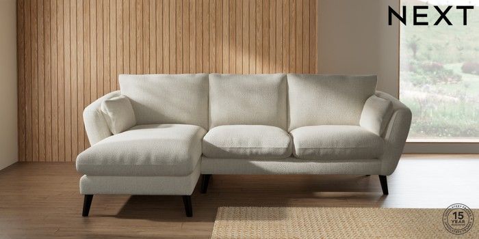 7.2.10 Orlo Relaxed Sit Medium Sofa Chaise - Left Hand Chunky Texture Oyster Retro Tapered - Dark | Made Click here to use our website with more accessibility support, for example screen readers
