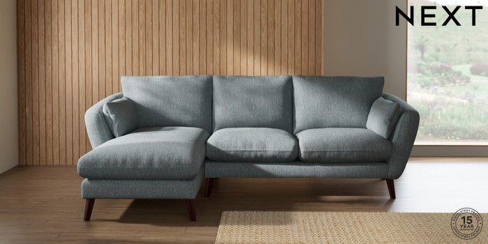 7.2.10 Orlo Relaxed Sit Medium Sofa Chaise - Left Hand Chunky Weave Mid Blue Retro Tapered - Dark Brown | Made Click here to use our website with more accessibility support, for example screen readers